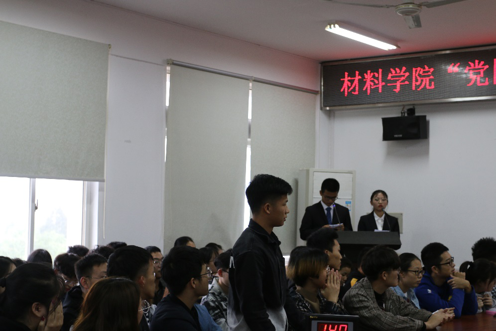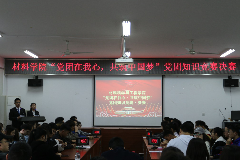 10月26日下午,我院在逸夫楼540举行了“我和我的祖国”主题系列活动之“党团在我心,共筑中国梦”党团知识竞赛决赛。院党委副书记莫家明、材化材工高分子学生党支部书记成璐、林化化工学生党支部书记王艳辉、森工学生党支部书记李斯担任此次决赛评委,院团委学生会主席团书记处成员和第63期入党积极分子培训班学员观看了本次比赛。本次比赛由组织部预备干事彭官圳和田涵主持。