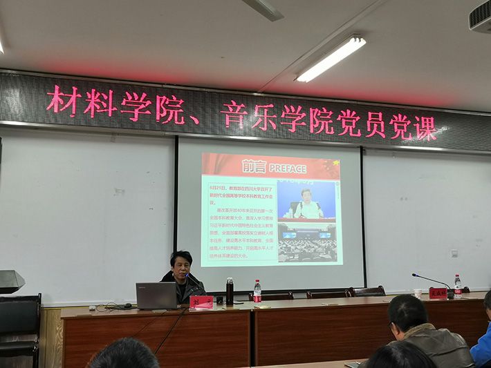 (文/材料学院 音乐学院)12月11日下午,学校党委委员、副校长刘元于逸夫楼540为材料科学与工程学院与音乐学院师生讲授了以“加快建设高水平本科教育 全面提高人才培养能力”为主题的党课。材料学院及音乐学院全体教工党员、部分学生党员代表参加了党课学习,党课由音乐学院党委书记吴成祥主持。