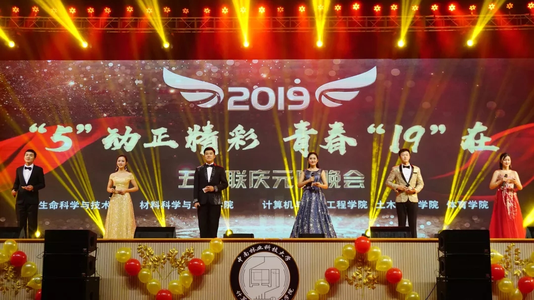 (文/成璐 图/陈瑞)辞旧迎新留胜绩,载歌载舞贺新年。12月27日晚,由生命科学与技术学院、材料科学与工程学院、计算机与信息工程学院、土木工程学院、体育学院联合主办的“’5’动正精彩,青春’19’在”元旦晚会在校体育艺术馆举行。学校纪委书记何学飞、党委委员、党委宣传部部长李凯、学生工作部等相关职能部门以及五个学院的师生共同参加了此次晚会。