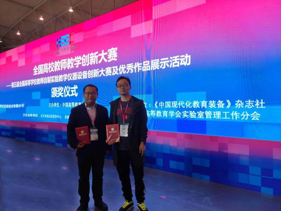 由中国高等教育学会主办的第五届全国高等学校教师自制实验教学仪器设备创新大赛于2018年10月19日至21日在四川成都举办了优秀作品展示活动,我校材料科学与工程学院胡进波、刘贡钢、苌姗姗三位老师自主研发的“木竹材气/液渗透性测试简易装置”获得全国三等奖。