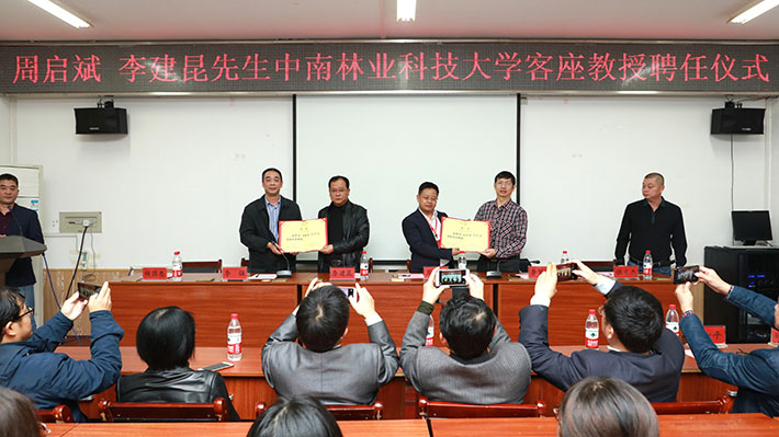李强书记、李贤军院长分别为周启斌董事长、李建昆董事长颁发了中南林业科技大学客座教授聘书。