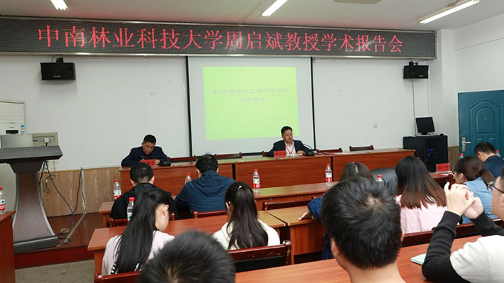 (文/杨国恩)2018年10月25日,肇庆市德庆上品精细化工有限公司周启斌董事长、肇庆英克斯化工有限公司李建昆董事长中南林业科技大学客座教授聘任仪式暨周启斌董事长学术报告会在逸夫楼540举行,材料学院共70余名师生参加了仪式。仪式由杨国恩副院长主持。
