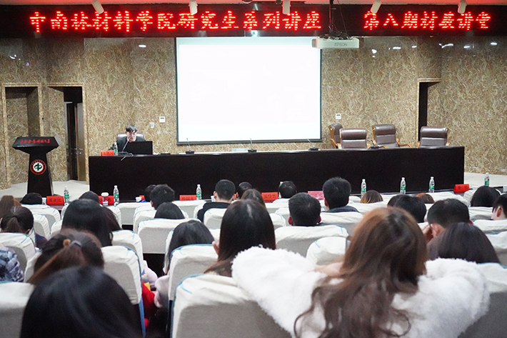 2018年11月23日19:00,由材料科学与工程学院研究生团委学生会与校研究生会学术部联合举办的2018年中南林材料学院研究生系列讲座--第八期材薮讲堂于图书馆报告厅顺利举行。2016级材料科学与工程学院优秀博士研究生代表葛省波和2016级旅游学院优秀硕士研究生代表沙子凯受邀作为主讲人参与了此次活动。材料科学与工程学院院长李贤军教授、研究生工作部部长张仕吉、创新创业学院院长祝海波、研究生工作部团工委书记黄杨以及材料科学与工程学院研究生辅导员方青出席此次活动,200余名在校研究生参与了此次讲堂。