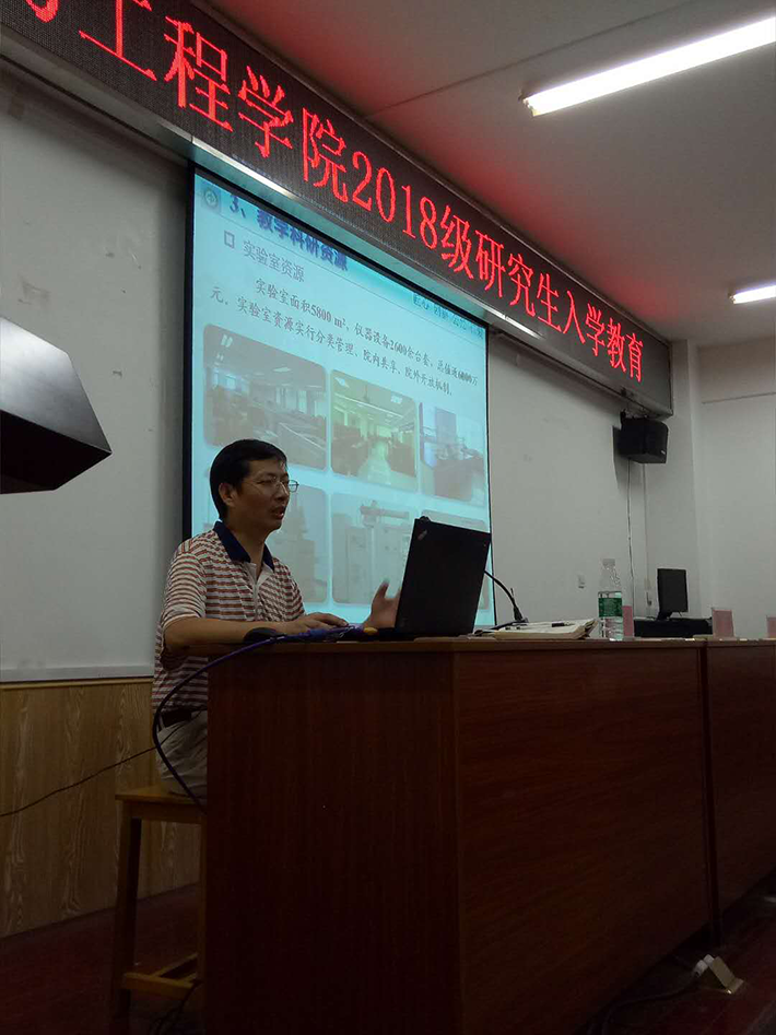 首先,李贤军代表学院对2018级研究生新生的到来表示热烈的欢迎,他从院情院史、专业设置、科研平台等方面做了相关介绍,并对新生提出三点希望:一是要存善良敬畏之心,希望大家在坚持学习的条件下保有一颗善心;二是铸坚强与自信之骨,通过生动形象的例举讲述自信的重要性;三是树奋斗与务实之风,提醒大家要做好吃苦的准备,认真学习,做好科学研究。