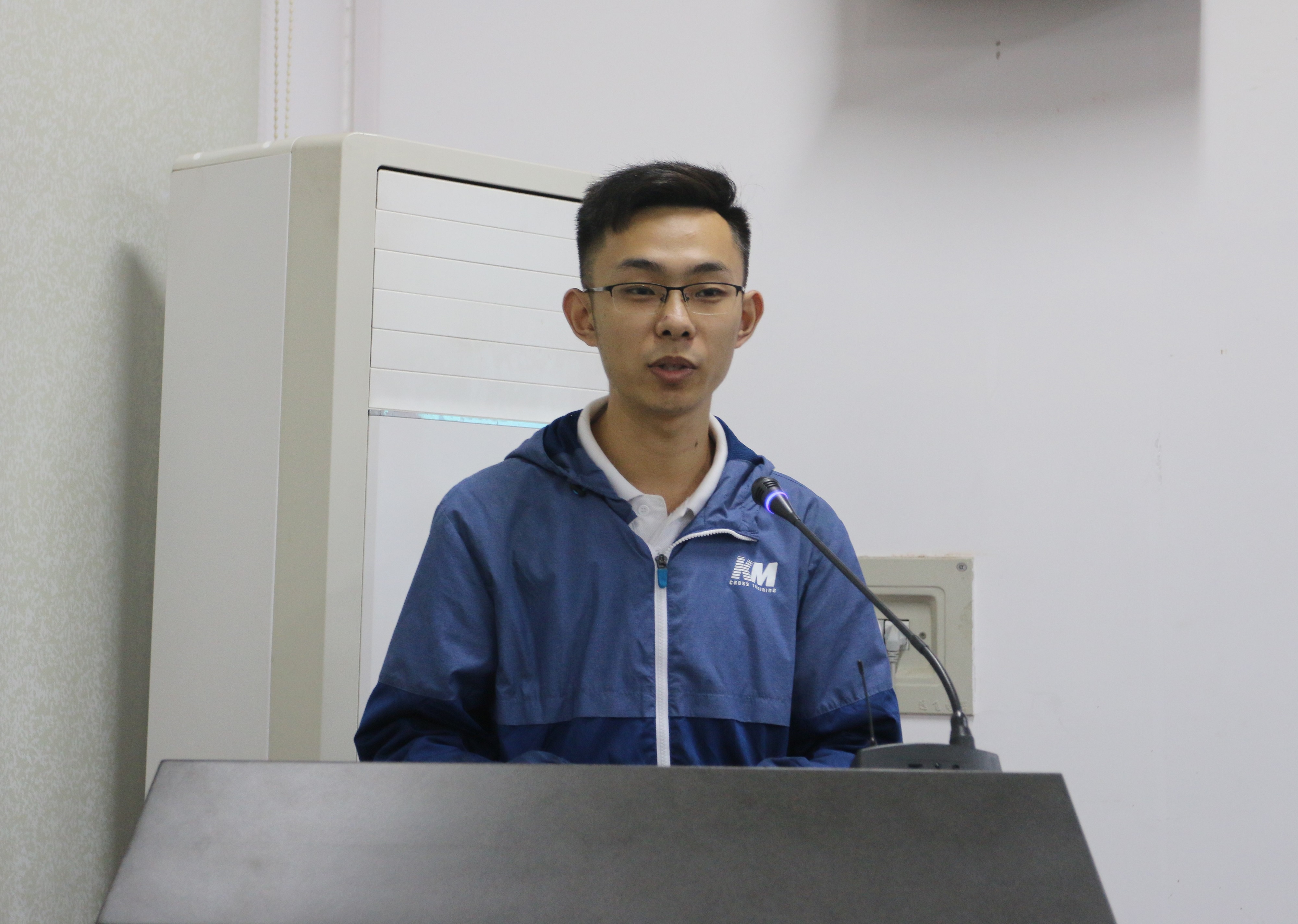 接着是徐冰杰的分享。她认为认清自己是大学中很重要的事情,她用自己三年的经历为学弟学妹们解释了什么是认清自己,并提到了认真学习的重要性。但同时,她也认为取得好的学习成绩并不是大学唯一的任务,我们还需要在各类方面充实、提升自己。她希望大家能够给自己多个方向,多个选择,未来在选择深造高校的时候不要局限于单个学校、单个目标,要为自己的未来多留一些机会。