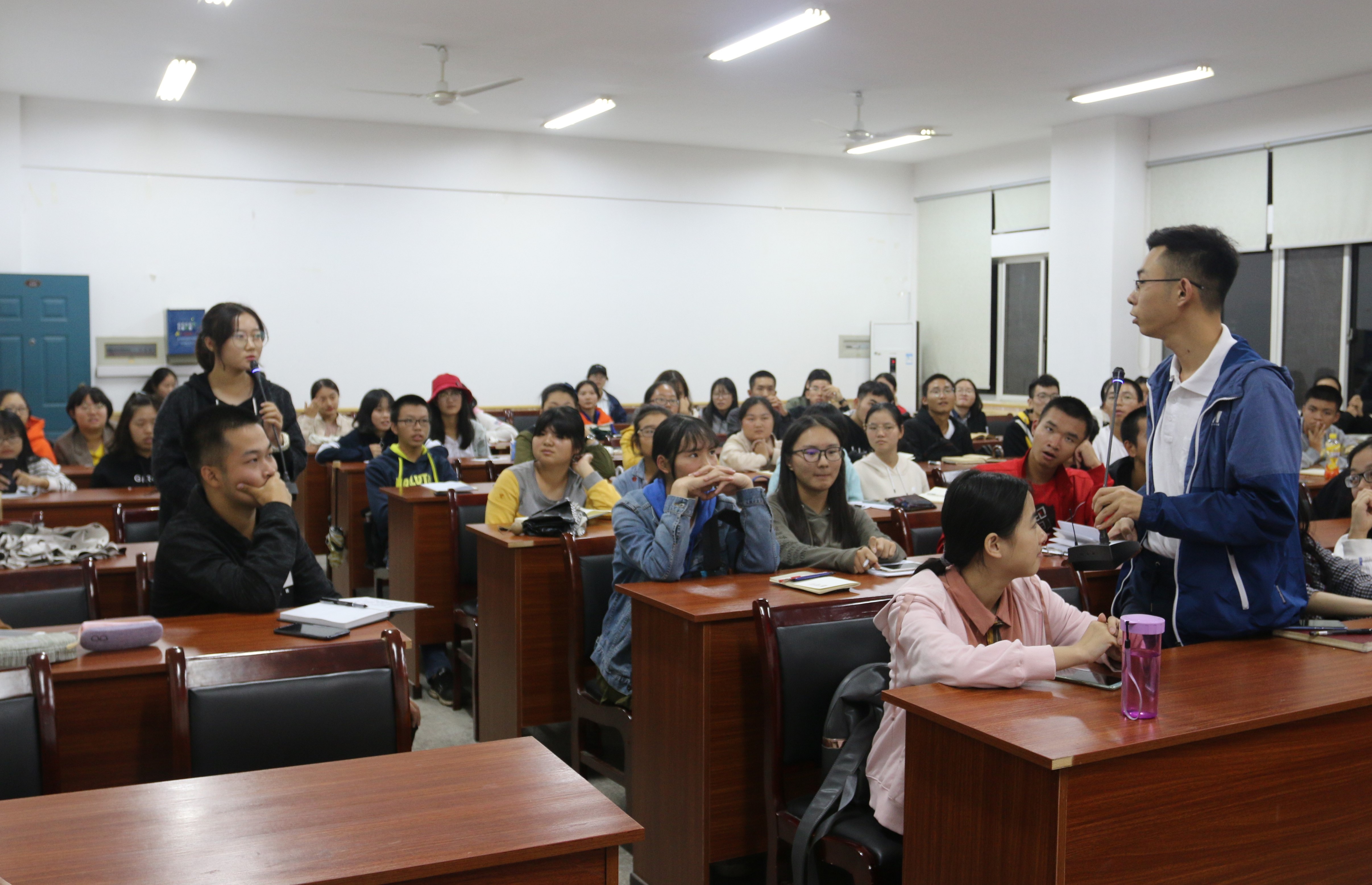 分享会的最后迎来了同学们期待已久的交流互动环节。在互动环节中,大一、大二的同学们踊跃地提出了一些关于学习、科研、竞赛等方面的问题,例如考研复习的方法、参与科研比赛的途径、个别科目高效的学习方法等,15级保研的各专业学长学姐也都给出了耐心、细致的回答。