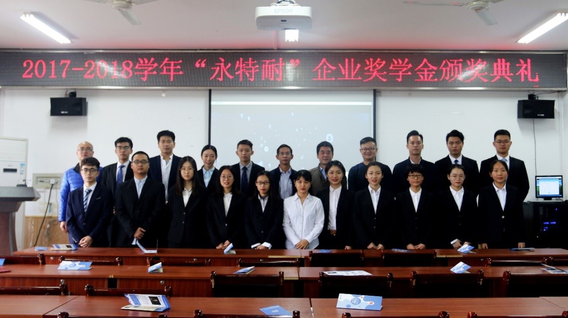 10月19日下午,我院在逸夫楼540举行“永特耐”企业奖学金颁奖典礼。广州市永特耐木胶贸易有限公司副总经理严星恒、技术总监王耿军、人力资源部经理冯维正、我院副院长杨国恩参加颁奖典礼。颁奖典礼由辅导员李斯主持。