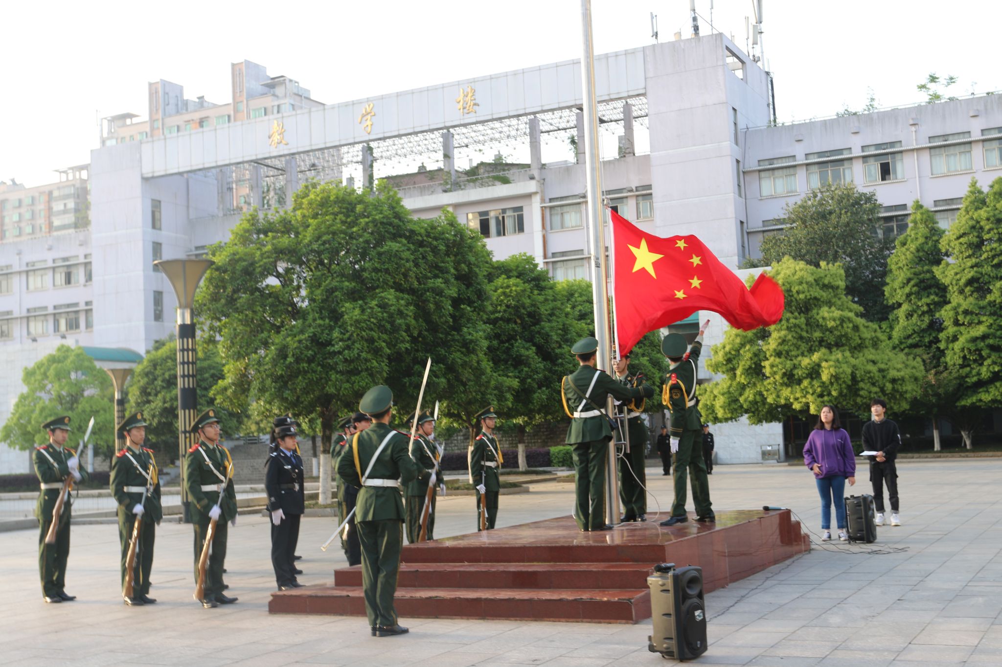 伴着慷慨激昂的《义勇军进行曲》,国旗护卫队的同学们迈着整齐的步伐入场,全体肃立,共唱国歌,向五星红旗行注目礼,场面庄严肃穆。国歌的旋律结束后,全体师生同唱校歌,歌声回荡,青春激扬。