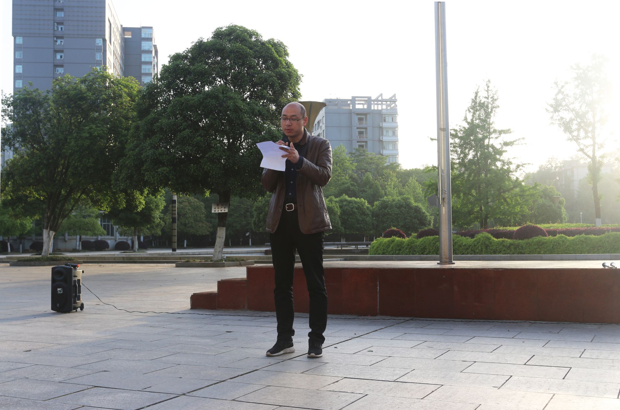 4月8日上午6:50,我院在图书馆前坪举行“以变革和奋斗致敬青春,以梦想和实干致力新时代”为主题的“国旗下的誓言”主题教育活动。参加本次活动的有校学工部副部长李健林、学生科齐一天,我院党委副书记莫家明,辅导员张哲、成璐、张婷、李斯、方青,全体学生党员、入党积极分子,院团委学生会干部以及2017级全体同学,共计600余人。本次活动由院团委常务副书记陈粤武主持。