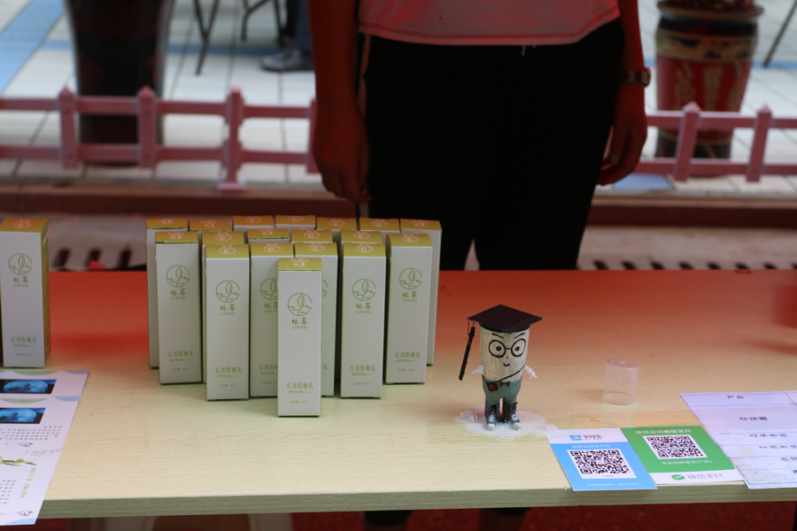 本次“小材大用”材料长廊主要展示了我院学生科研创新产品“林萃”精华天然长效防晒乳、“绿色新型高耐防腐重组竹装饰材料”、“超疏水材料”等挑战杯获奖作品以及由“3D打印技术”制作而成的学院吉祥物—C宝,同时也对部分我院创新创业能力提升中心的同学利用课余时间制作的植物香囊、叶脉书签、竹板书签以及利用高分子教研室的注射成型工艺机器设备制作的纯PP衣架等进行了义卖。