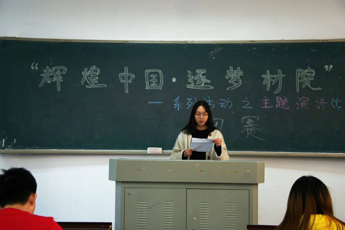 为了让学生更加深刻体会到“大国工匠”的精神真谛、不断增强自身本领、在实践中实现“中国梦”、放飞梦想,12月11日中午,我院于主教北202、203、204教室进行了“辉煌中国·逐梦材院”系列活动之风采演讲比赛初赛。15-17级各班代表参加此次比赛,我院团委学生会主席团书记处成员及各部门部长担任评委,本次比赛由组织部干事主持。