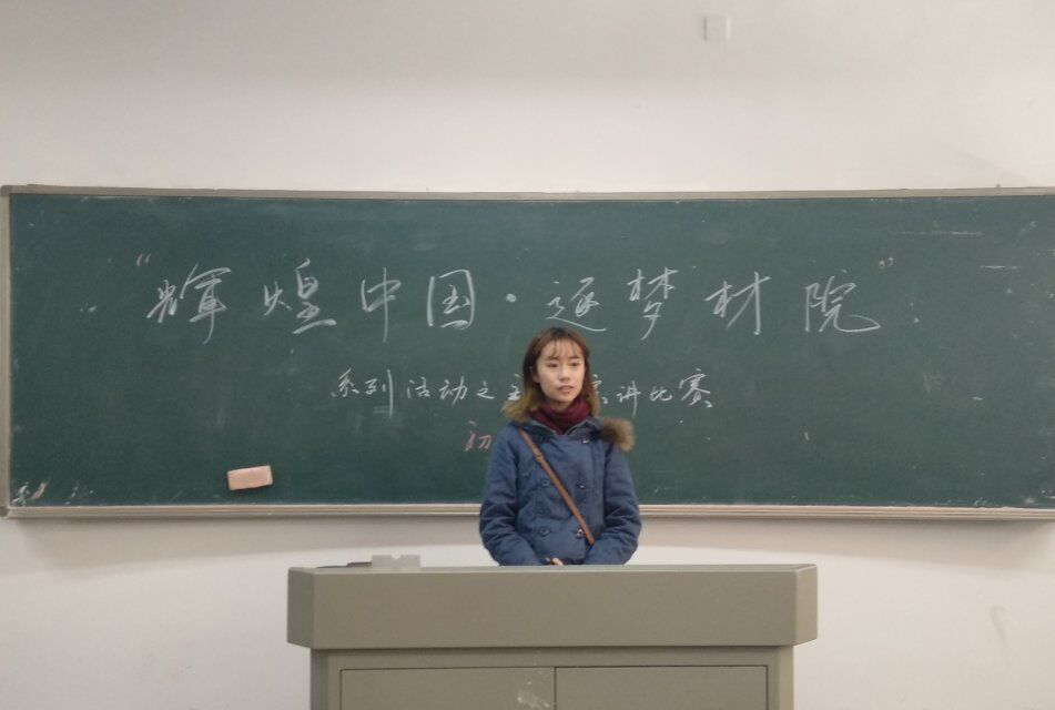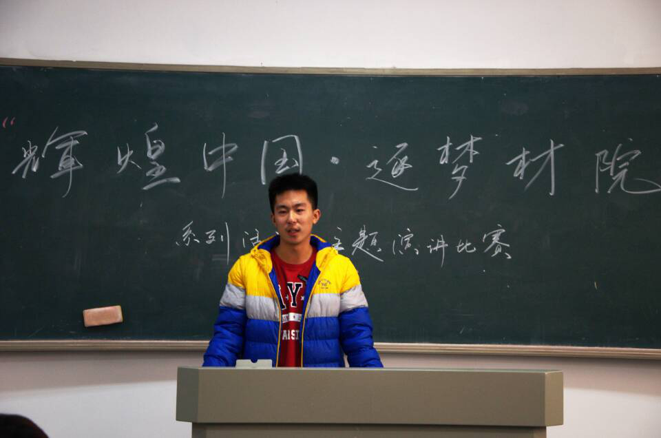 有的同学则站在国家发展的大角度上,发表了自己作为一名材料学子的见解,17级材料类6班演讲者朱蓉菲提到“无材料不中国”,讲述了一名材料学子应将家国情怀融入到自己的学习工作中,努力学习,为“中国梦”的实现贡献一份自己的力量。