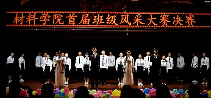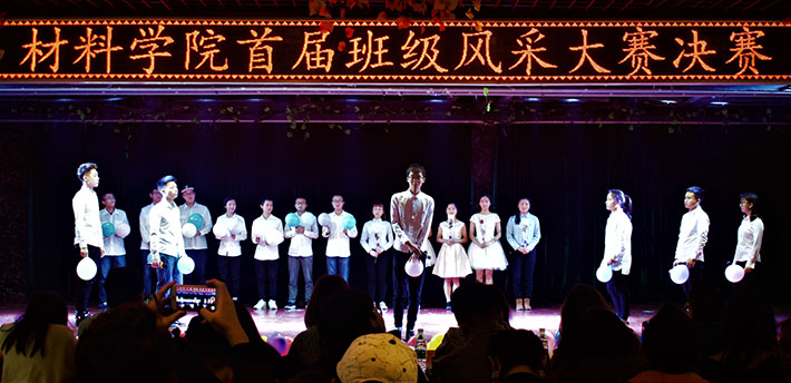 12月10日下午,材料学院首届班级风采大赛决赛于大学生活动中心举行,参加本次大赛的嘉宾有材料学院党委副书记莫家明、辅导员张哲、成璐、张婷、李斯,第十二届团委学生会主席团书记处及各部门部长,担任本次大赛的评委有材料学院团委学生会主席田奋扬、艺术团团长曹静涵、商学院艺术团团长黄燕、外国语学院艺术团团长乔杉,TGA艺术团副团长刘晓博,本次大赛由材料学院艺术团王欣悦,周军主持,材料学院2017级新生共四百余人观看比赛。