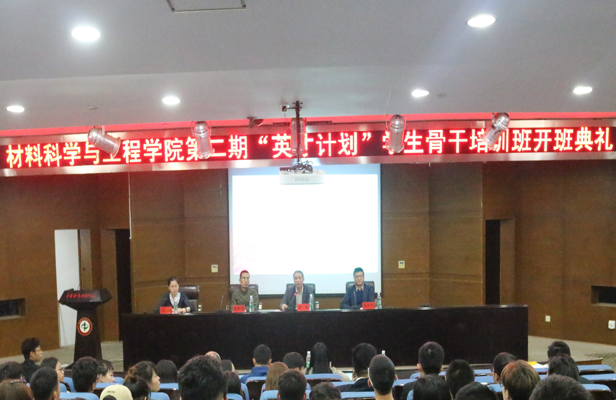 (文/材料学院 张益诚)11月10日晚,我院“英才计划”学生骨干培训班开班仪式在图书馆报告厅举行。我院党委书记李强、校宣传部副部长张胜利、我院党委副书记莫家明参加仪式并讲话。我院辅导员张哲、李斯,生科院辅导员刘桂仙、孙林琳,团委学生会全体学生干部、部分干事、2017级各班班团干部以及生科院的部分学生共计220人参加仪式。仪式由我院辅导员成璐主持。