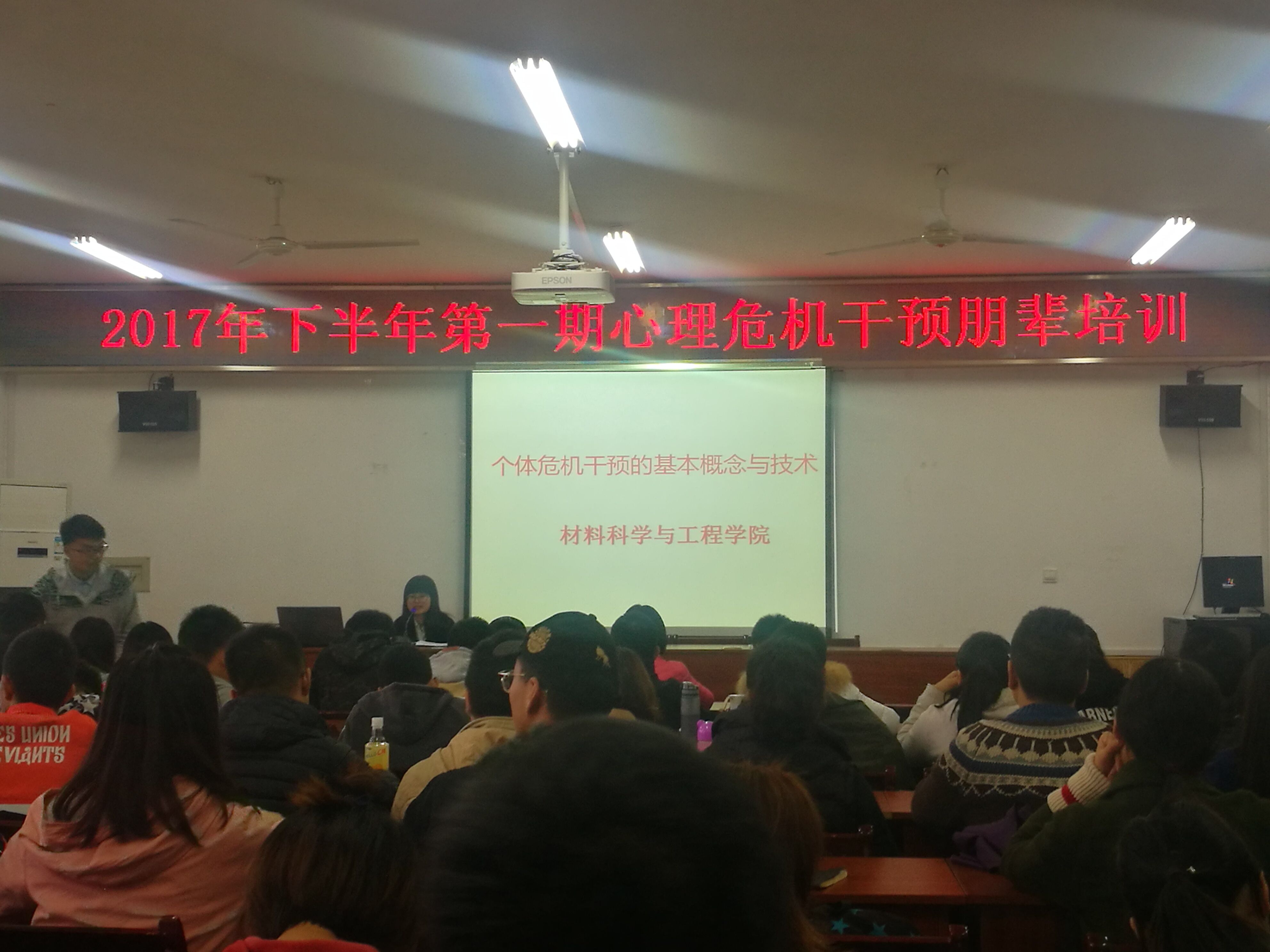 11月13日中午,材料科学与工程学院在逸夫楼540开展2017年下半年心理危机干预朋辈培训。学院党委副书记莫家明、辅导员李斯、各年级各班心理委员、17级助理班主任、班长及心理部干事参加本次培训,培训由辅导员张婷主持。