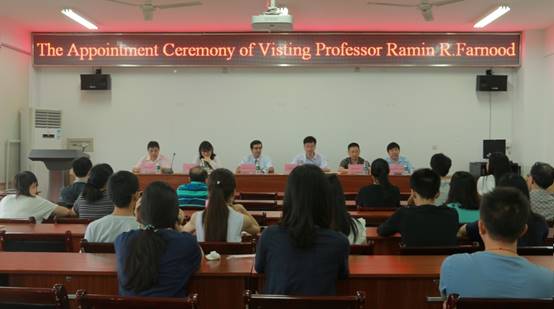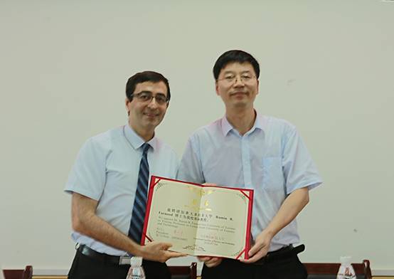学术报告会之前,Farnood教授被聘为我校客座教授。吴义强副校长,人事处李红军副处长,材料科学与工程学院张仕吉书记、袁光明副院长、吴志平副院长、湖南省芙蓉学者Ning Yan教授参加了聘任仪式。副校长吴义强教授致辞热情欢迎Farnood教授来我校访问并兼任客座教授、颁发聘书;并就我校历史沿革、办学特色、优势领域进行简单介绍,并期望借助国家人才政策招贤纳士,加速我校一流学校、一流学科建设。