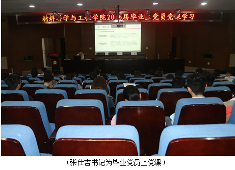 5月24日,材料学院在图书馆报告厅召开毕业生党员大会,出席大会的有学院党委书记张仕吉、党委副书记乔建政、辅导员张哲、李伟坡和全体毕业生党员。大会由李伟坡老师主持。