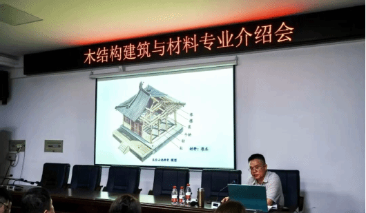 在专业介绍会中,陈爱军以历史上具有广泛认知度的木结构建筑为切入点,逐步引导新生走进木结构专业领域。随后,他系统介绍了所在学院木结构相关专业的实践成果,内容覆盖多项具备行业影响力的项目;同时,分享了个人参与项目的经历与感悟。通过多维度的讲解,帮助大家直观、清晰地建立对该专业的认知,进一步明确专业发展脉络与实践方向,为后续学习和探索提供参考。