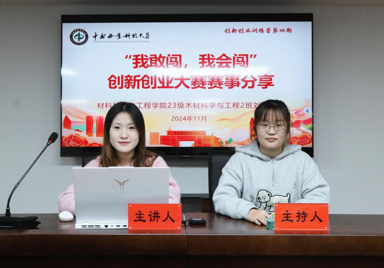 2024年11月28日19:00,学院创新创业训练营第四期在逸夫楼B10(多功能活动厅)顺利召开。本次讲坛由创新创业部部长刘星贝做主题为“我敢闯、我会创”的创新创业相关比赛分享。创新创业全体营员参加本次讲坛,讲坛由陈怡然同学主持。
