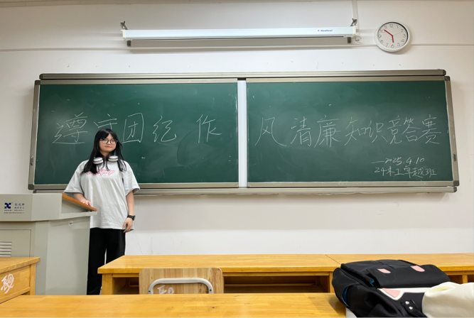 通过此次活动,我们不仅深化了对团纪团规的理解,更将清廉理念根植于心。作为新时代青年,我们应当以此次活动为新的起点,在日常学习生活中自觉践行廉洁自律,时刻牢记团员使命,永葆初心本色。让我们携手并肩,以青春之我建设清廉之校,用实际行动诠释“请党放心,强国有我”的铮铮誓言,让清廉之风吹遍校园每个角落,让青春在全面建设社会主义现代化国家的火热实践中绽放绚丽之花!