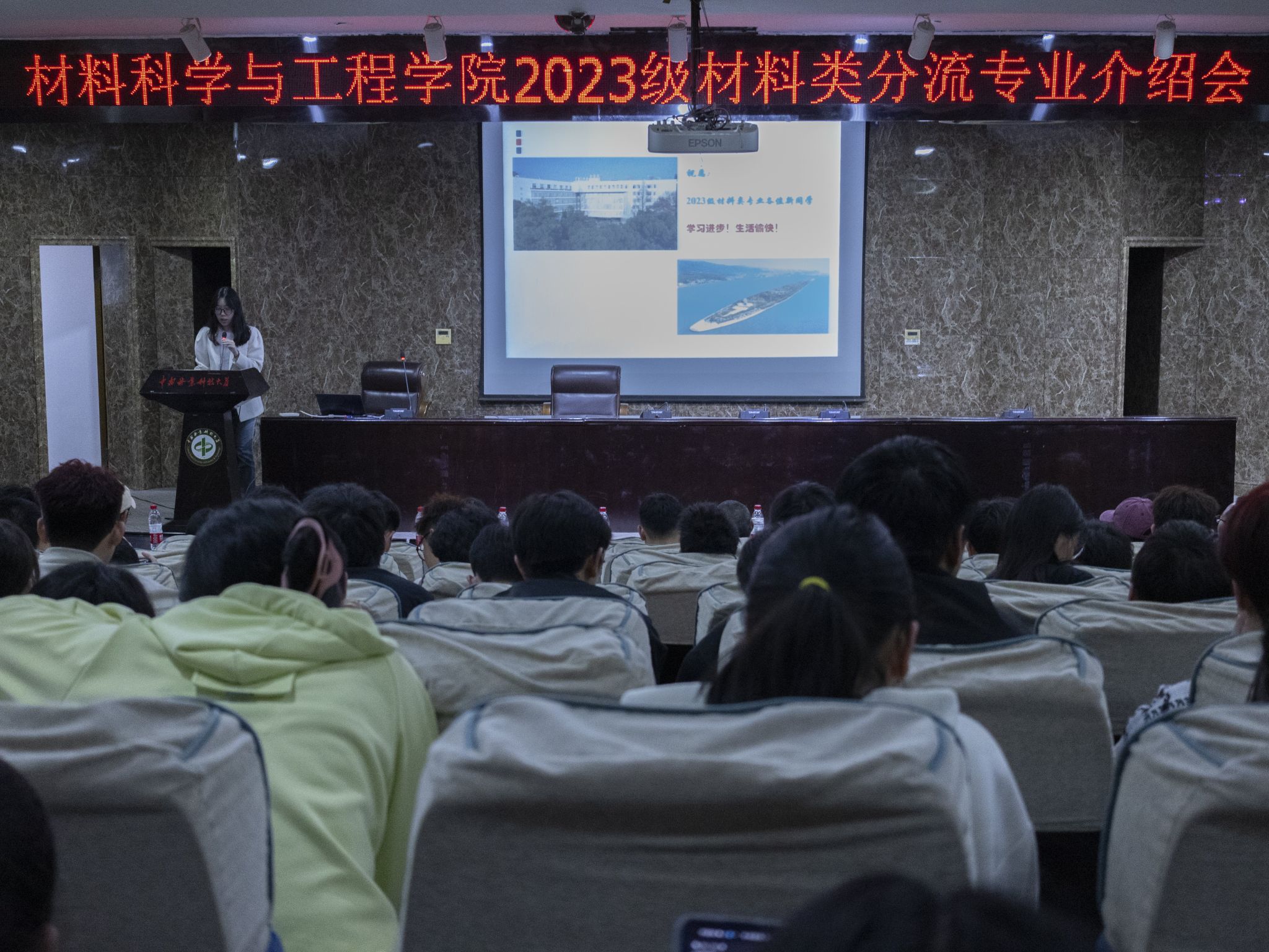 为增进材料类学生对材料科学与工程、材料化学、高分子科学与工程三个专业的了解,更加深入地进行专业学习与研究,明确专业方向,材料学院于4月17日晚19:00在图书馆报告厅举办了2023级材料类专业分流宣讲会。我院材料科学与工程系主任胡进波教授、材料化学系主任邓凌峰副教授、高分子科学与工程系副主任吴献章副教授和各教研室老师以及23级辅导员周如水老师,共同为到场的200余名材料类专业学生答疑解惑。