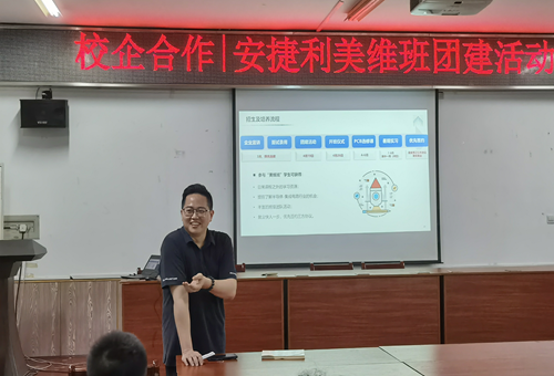 首先,黄志雄经理给学员们详细介绍了安捷利美维公司的发展历程、基地分布、核心产品及规划发展等内容,让同学们更加深入的了解与认识安捷利美维公司。接着,给学员们介绍安捷利美维班项目,并对第四届安捷利美维班整体实施安排进行了详细的说明及解答。