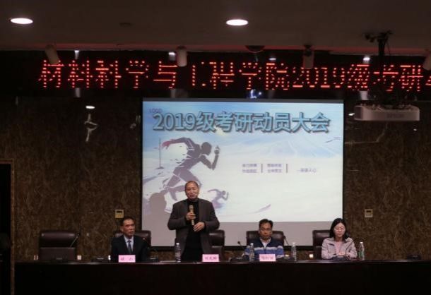 为更好地调动我院2019级学生考研积极性、帮助学生规划备考方案,增强学生考研信心、提升考研竞争力。3月10日中午12点,材料学院2019级考研动员大会在图书馆报告厅顺利召开。学院党委书记刘光辉、副书记莫家明、理学院副院长陈红斌教授、“考研导师”姚叔及2019级200余名同学参加了此次会议。会议由2019级辅导员管姮雁主持。