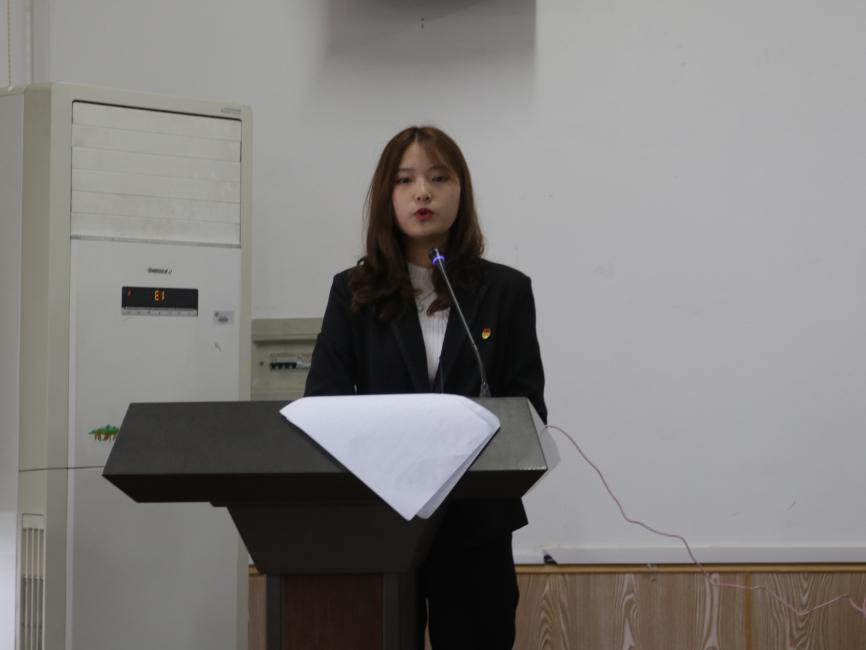 院学生会主席赵天崎在恭喜各位预备干事顺利转正后,分别对干事和干部进行提问,让其反思总结之前的工作并对未来进行规划,最后她对评分标准进行了解释及再阐述。