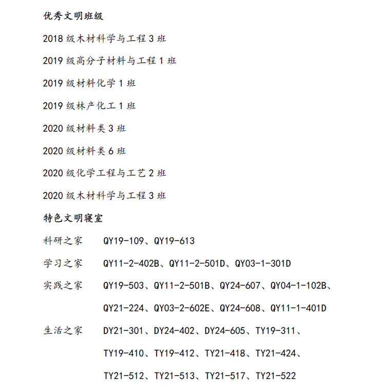 最终根据《文明班级评比标准》、《文明寝室评分标准》,在评比委员会小组讨论下,选出9个文明班级,25个文明寝室,现将结果公布如下: