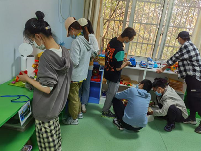 心作为志愿者协助老师上课,为孩子们的玩具消毒等。
