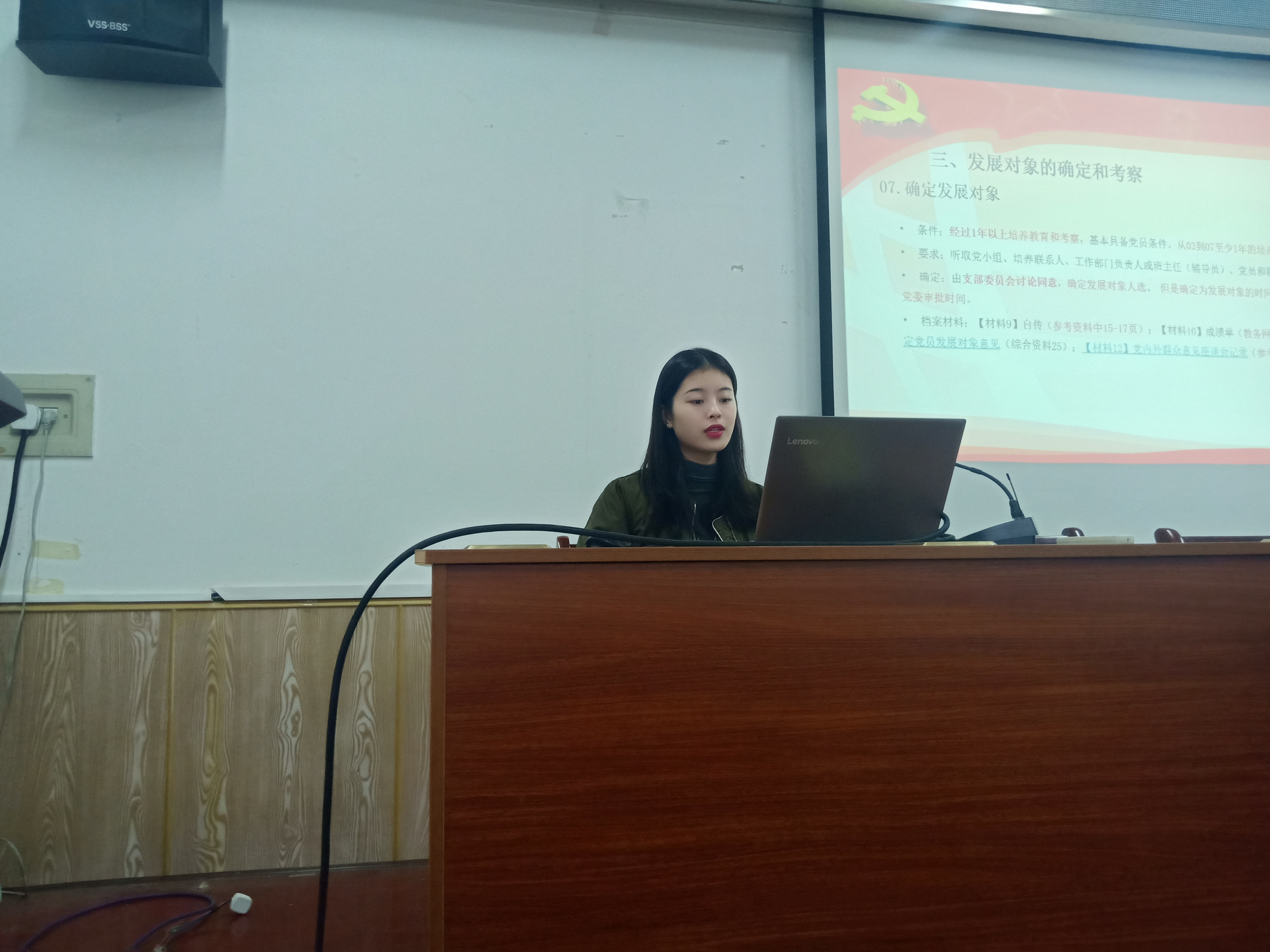 会议内容:团委常务副书记罗涵予对18-19级团支书进行入党流程的培训