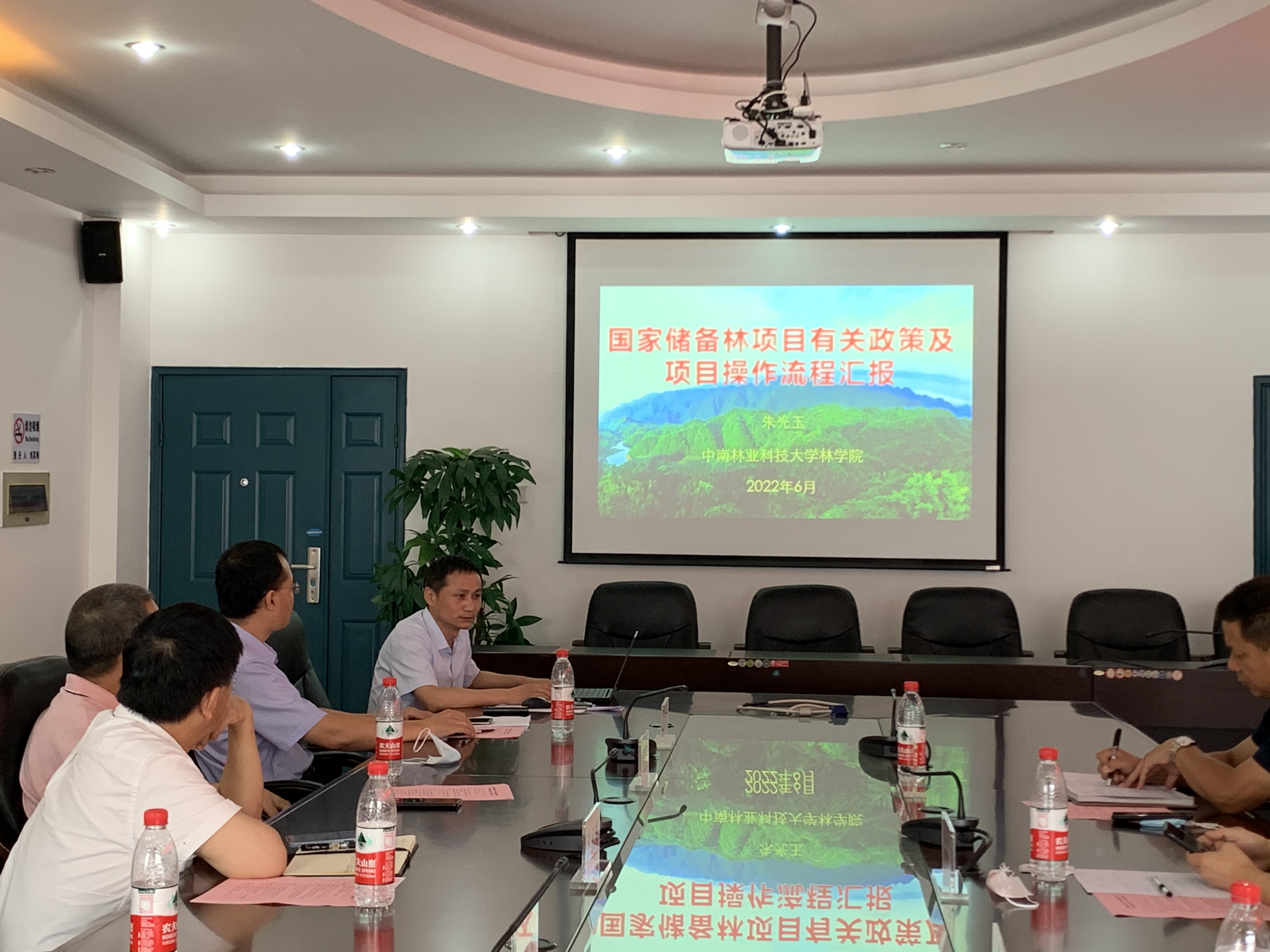 刘曙光教授就学校开展碳汇计量、监测与核算体系研究的相关情况进行简要介绍;朱光玉教授介绍了学校开展国储林项目情况;卿彦副院长介绍了材料科学与工程学院的发展历史、科研成果、学科专业、人才培养及产学研合作等情况,重点介绍了学院在木、竹材领域的科技成果。