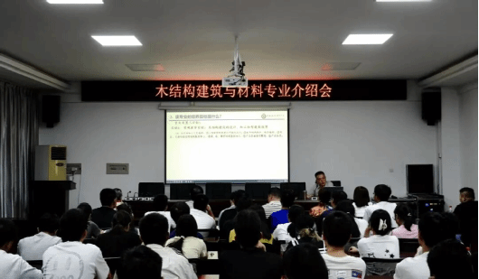 在专业介绍会中,陈爱军以历史上具有广泛认知度的木结构建筑为切入点,逐步引导新生走进木结构专业领域。随后,他系统介绍了所在学院木结构相关专业的实践成果,内容覆盖多项具备行业影响力的项目;同时,分享了个人参与项目的经历与感悟。通过多维度的讲解,帮助大家直观、清晰地建立对该专业的认知,进一步明确专业发展脉络与实践方向,为后续学习和探索提供参考。