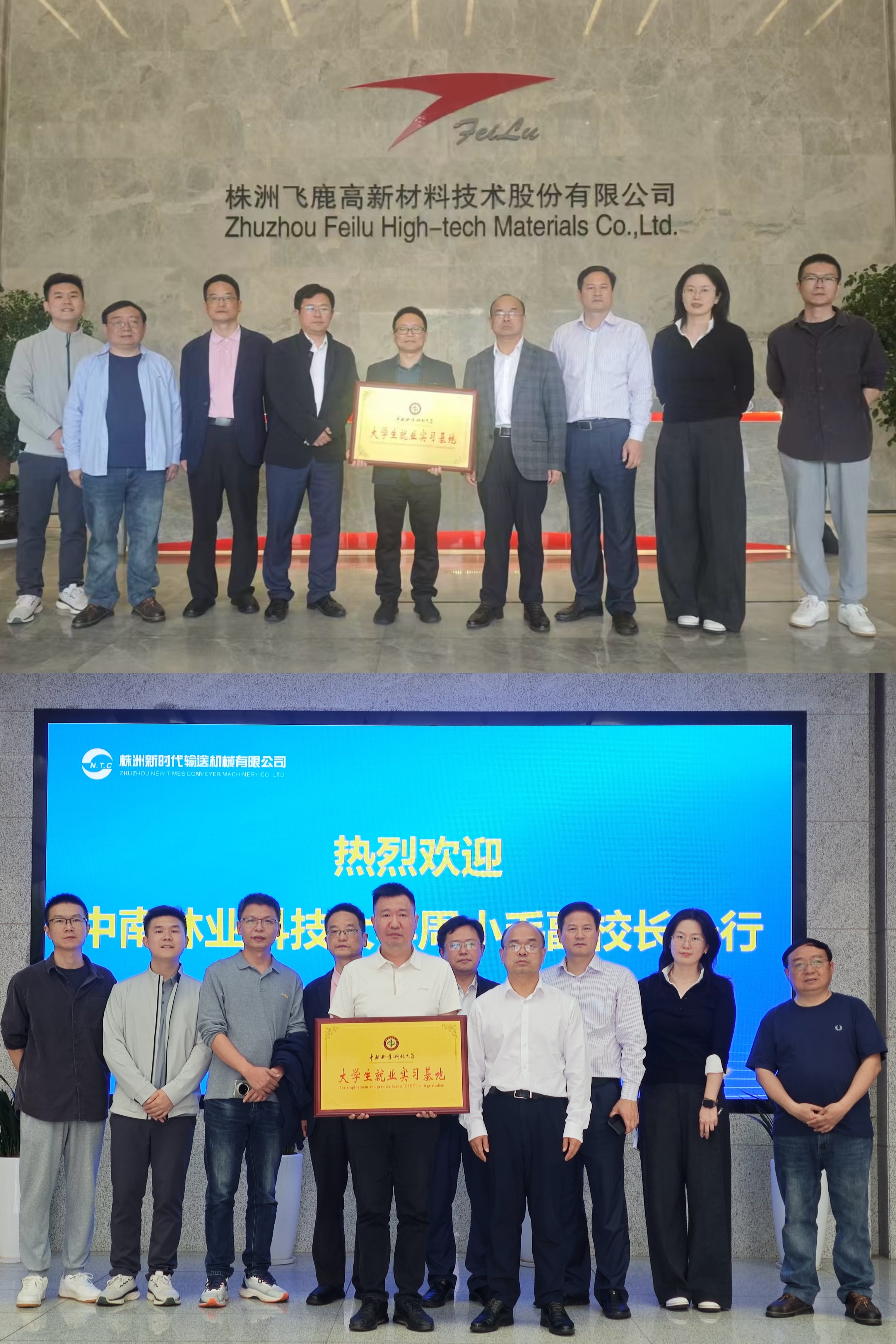 周小毛代表学校分别为飞鹿高新材料技术股份有限公司、新时代环保科技有限公司授予“大学生就业实习基地”牌匾,校企将通过深化合作,促进科学研究与产业应用的紧密结合,培养更多具有实践能力和创新能力的专业人才。