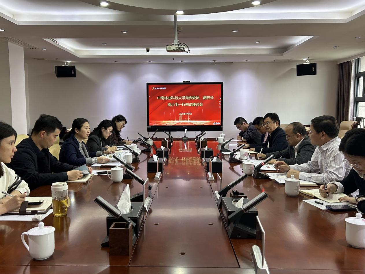 周小毛一行先后走访株洲市产业发展投资控股集团有限公司、飞鹿高新材料技术股份有限公司、时代新材料科技股份有限公司、株洲新时代输送机械有限公司和新时代环保科技有限公司,并围绕人才培养、人才供需对接、校企合作需求等方面开展政校企三方座谈。在株洲市产业发展投资控股集团有限公司,周小毛表示,中南林业科技大学与株洲市的合作有着非常好的开端、好的基础和好的阶段性成效。此次交流要寻求深化合作,推动校地两端的合作走深走实。就如何推动进一步合作,他指出,要构建精准对接机制,将企业岗位需求与毕业生信息精准匹配至具体专业班级、特定区域生源,切实提升毕业生在湘就业率。要进一步创新产教融合模式,打造产学研协同创新体系,联合建设科研平台、组建攻关团队、实施产业化项目,通过项目化运作、责任化分工、信息化管理,构建校政企三方协调联动、融合推进的发展机制,助力合作早日结出成功的硕果。