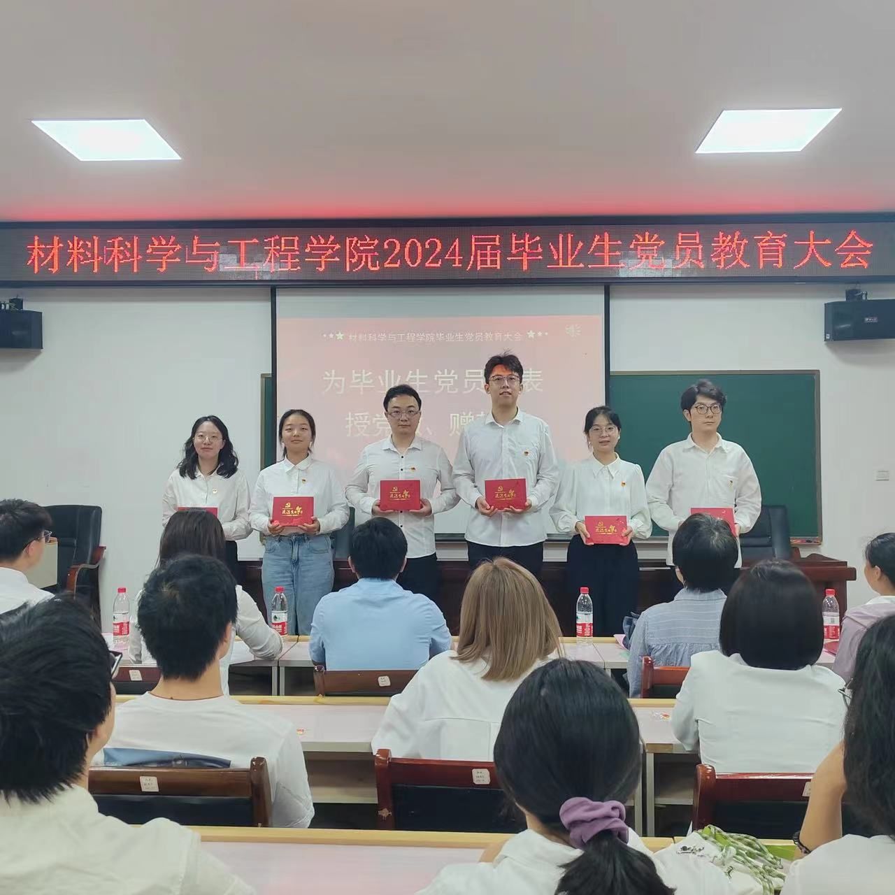 授一次党徽。党徽是党员身份的象征,也是党员责任和使命的体现。会上,赵培瑞、成璐及各学生党支部书记为毕业生党员代表佩戴党徽,希望各位即将毕业的学生党员,能够牢记党的宗旨,在未来的工作和生活中继续发挥党员的先锋模范作用。