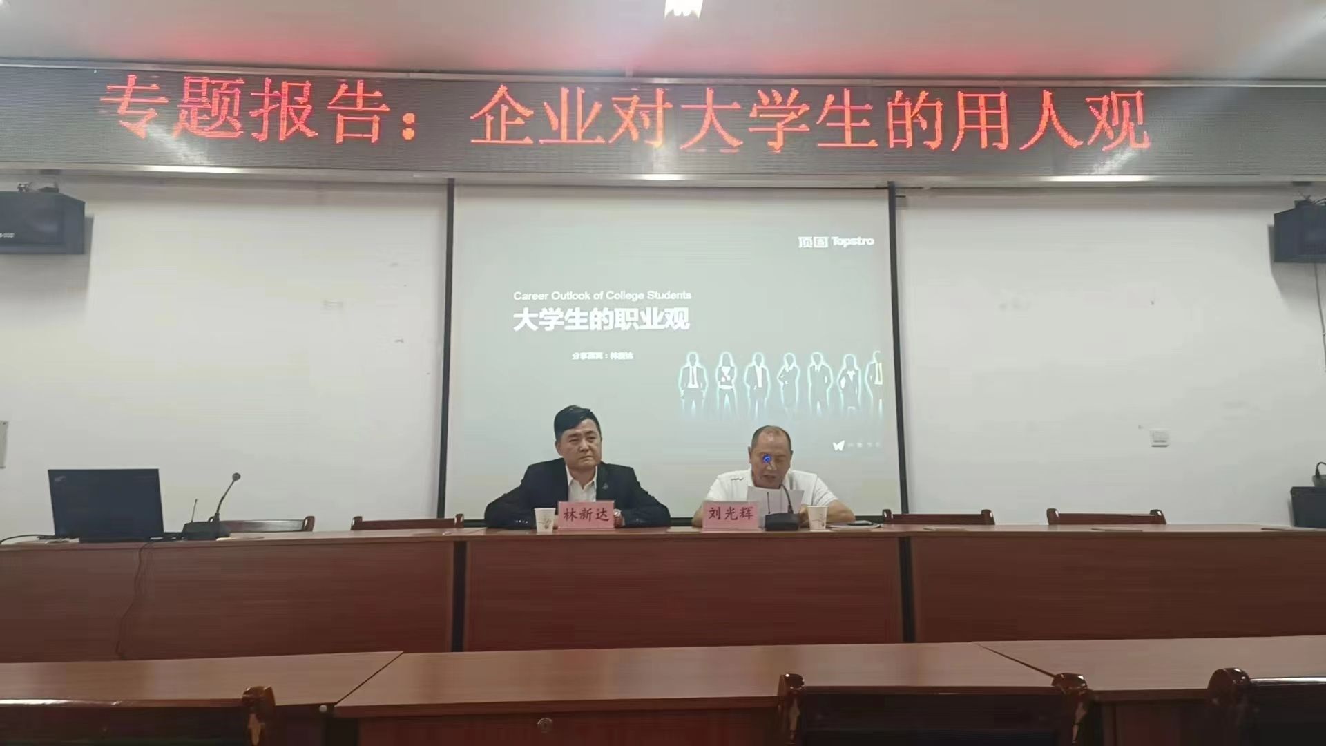 林新达从企业对大学生的用人观出发为同学们解析毕业生进入企业后的职业规划、心理方面的障碍以及职业经理人的发展现状;通过剖析当今大学生就业的重点与趋势,对行业未来发展进行展望,并就求职过程中树立健康价值观与发展的重要性提出了自己的见解。同时鼓励同学们在校期间扎实学好专业技能,努力奋斗,成为德能兼备的技能型人才,心系国家,服务社会,做一个有责任有担当的新时代青年。他的讲座深入浅出、案例详实,深受在座师生的欢迎。