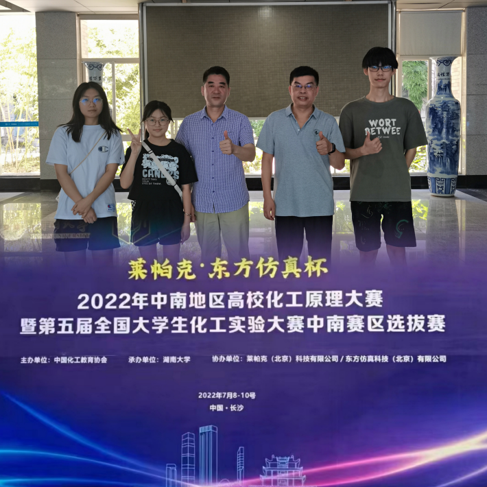 2022年7月9日至10日,2022年中南地区高校化工原理大赛暨第五届全国大学生化工实验大赛中南赛区选拔赛在湖南大学举行。我院组织由杨国恩、旷春桃和王贵武三位老师组成指导团队,带领2020级杨祎祎、周冠宏、张覃三位同学代表学校参赛,勇夺中南赛区一等奖并跻身全国总决赛。我校连续4年参加本项赛事,终获突破。