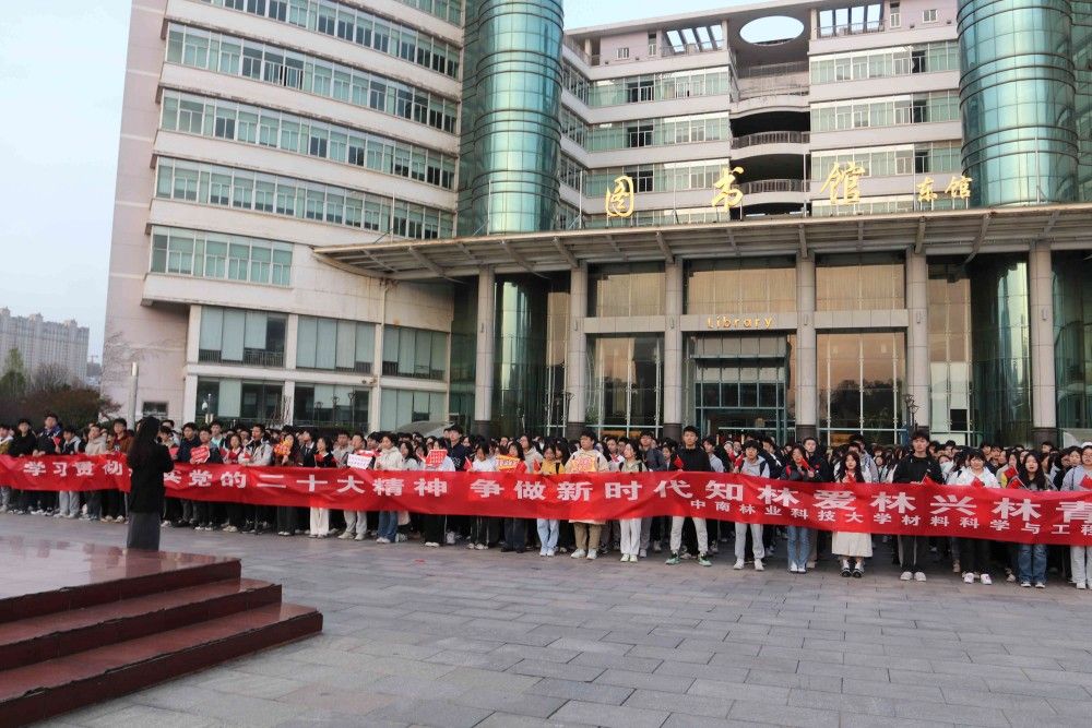 3月13日早上,我院在陶铸广场举行以“学习贯彻党的二十大精神,争做新时代知林爱林兴林青年”为主题的“国旗下的誓言”爱国主义教育活动。院党委书记刘光辉、党委副书记莫家明、校学生工作部齐一天、学院全体辅导员、学生党员、团学干部,以及2021、2022 全体学生1000余人参加此次活动。