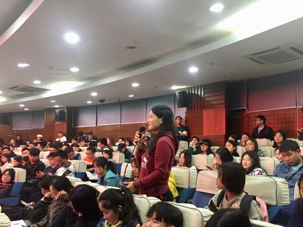 在演讲结束后,现场同学积极踊跃的向其请教如何正确合理安排学习与学生服务工作以及社会实践之间的时间分配等问题,王诗涵一一作出细致解答。