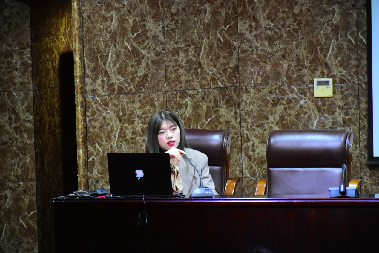 王诗涵同学以“在社会实践和学生服务中实现研究生自我价值”为主题,分享了自己的三年研究生生活。主要从三个方面展开了主题分享: