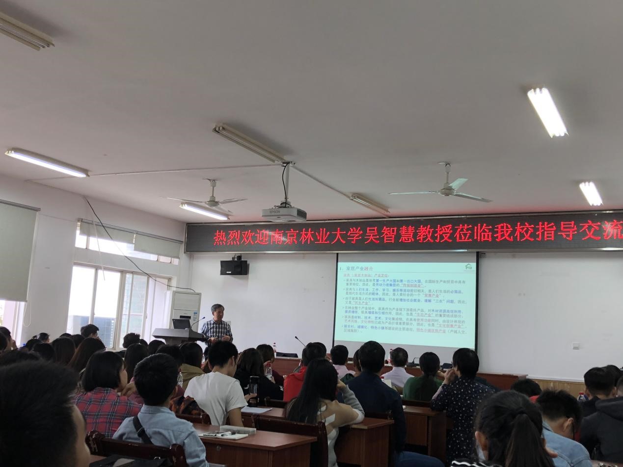首先主持人简要介绍了吴教授的基本情况,李院长致辞,对于吴智慧教授来校访问表示热烈的欢迎和诚挚的敬意。随后学术报告正式开始,吴教授在报告中指出了在家居行业中智能制造、绿色制造的重要性,为师生们拓展了大家居新视野;详实透彻地分析了家居行业面临的环境、制造、资源等方面的问题以及对应的解决方法;同时指出了家居制造向数字化转型的必然趋势——家居制造纳入以智能制造为主导、传统制造技术与互联网技术融合的第四次工业革命。